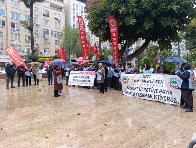 Emekliler Mersin’de ‘insanca yaşama yetecek bir maaş’ talebiyle başlattıkları eylemlerine devam ediyor. Özgür Çocuk Parkı’nda yağmura rağmen bir araya gelen emekliler bir kez daha taleplerini iletti.